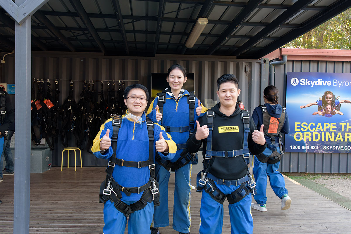 悠闲的一天后一大早我们就开车前往90km处的拜伦湾,参加人生中的第一次4500m高空跳伞,只有姚卖萌是给钱都不愿意上的主。到达跳伞处真是即紧张又害怕又有那么点期待。